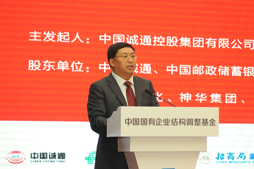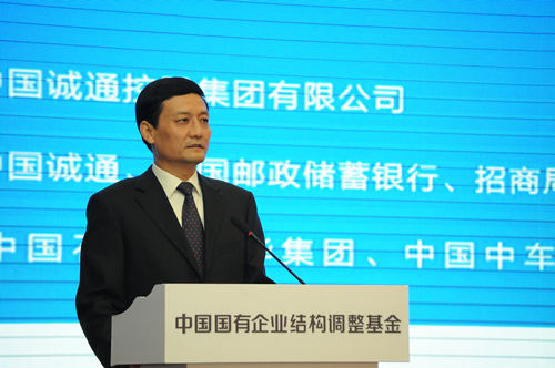 9月26日,中國(guó)國(guó)有企業(yè)結(jié)構(gòu)調(diào)整基金股份有限公司成立大會(huì)暨揭牌儀式在北京隆重舉行。國(guó)務(wù)院國(guó)資委主任肖亞慶、副主任孟建民、國(guó)有重點(diǎn)大型企業(yè)監(jiān)事會(huì)主席李克明,北京市副市長(zhǎng)隋振江,基金主發(fā)起人中國(guó)誠(chéng)通控股集團(tuán)有限公司董事長(zhǎng)馬正武、總裁朱碧新,基金9家共同發(fā)起人中國(guó)郵政儲(chǔ)蓄銀行股份有限公司、招商局集團(tuán)有限公司、中國(guó)兵器工業(yè)集團(tuán)公司、中國(guó)石油化工集團(tuán)公司、神華集團(tuán)有限責(zé)任公司、中國(guó)移動(dòng)通信集團(tuán)公司、中國(guó)中車(chē)集團(tuán)公司、中國(guó)交通建設(shè)集團(tuán)有限公司、北京金融街投資有限公司主要領(lǐng)導(dǎo)出席成立大會(huì)。來(lái)自國(guó)務(wù)院國(guó)資委、股東單位、各中央企業(yè)、部分地方國(guó)資委、部分金融機(jī)構(gòu)以及新聞媒體等有關(guān)單位約300位領(lǐng)導(dǎo)和嘉賓,共同見(jiàn)證了基金成立的歷史時(shí)刻。朱碧新總裁主持成立大會(huì)暨揭牌儀式。誠(chéng)通東方公司黨委書(shū)記、總經(jīng)理關(guān)武出席大會(huì)。