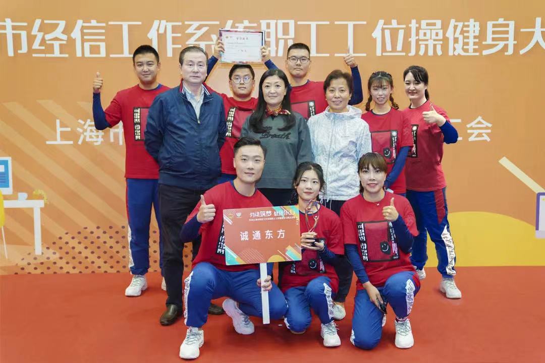近日,由上海市經(jīng)濟(jì)和信息化工作系統(tǒng)工會(huì)組織的“勞動(dòng)筑夢 健康樂行”職工工位健身操大賽圓滿落下帷幕。代表誠通東方參賽的隊(duì)員們一路過關(guān)斬將,在11月7日總決賽中表現(xiàn)優(yōu)異,榮獲三等獎(jiǎng)。